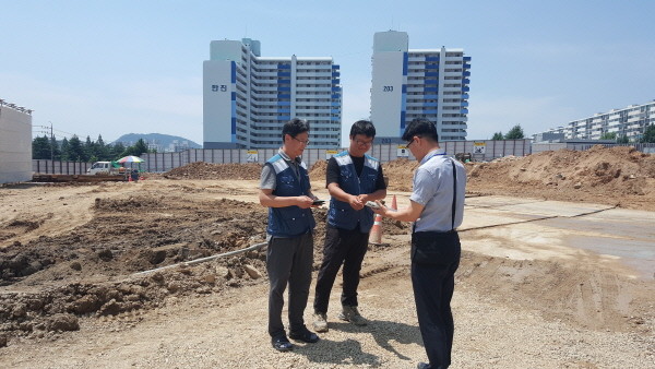 공사장 미세먼지․온실가스 줄이기 리플릿 배부 모습