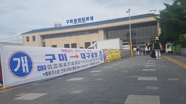 ‘18년 연간 45,682명에서 ’19년 6월까지 31,047명으로 이용객이 증가하는 추세에 발맞춰 기존 출발지 탑승시설을 개선하기 위해 이번 7월 10일자로 구미종합터미널에 입점을 결정해 ‘시외버스통합예매시스템’’과 시외버스모바일‘ 앱 으로 승차권 예매가 가능하게 됐다. 이를 위해 구미버스터미널 등 곳곳에 현수막 설치와 버스정보시스템, 구미시홈페이지를 통해 홍보를 하고 있다.