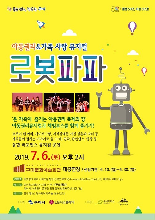 구미시는 지난 6일 구미문화예술회관 대공연장에서아동권리&가족사랑 뮤지컬‘로봇파파’를 성황리에 개최했다.