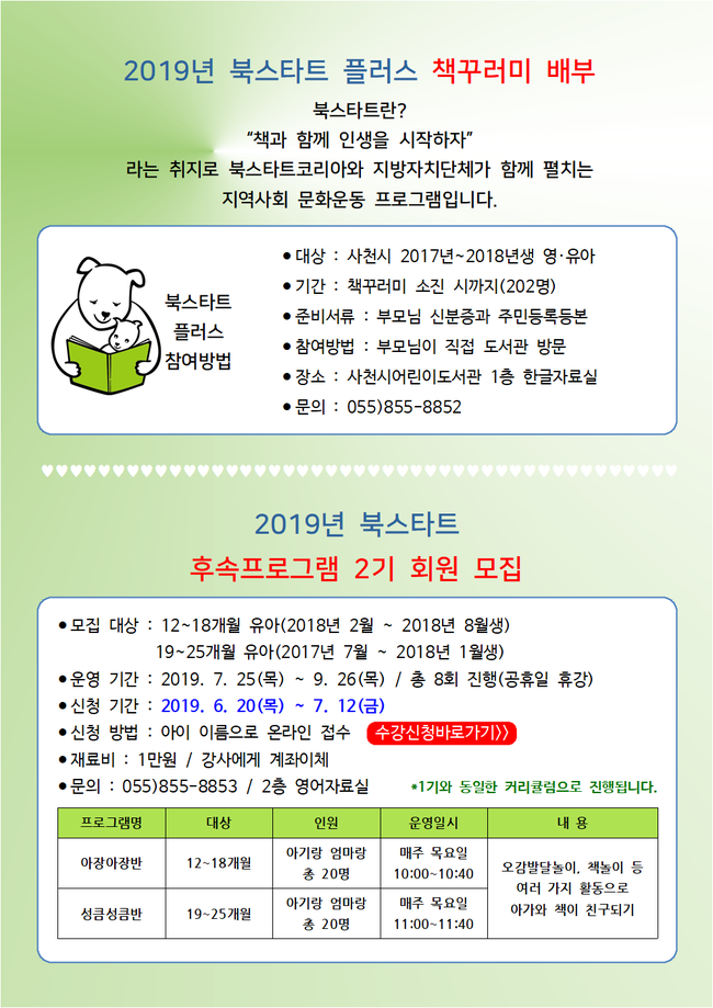 사천시어린이도서관에서 북스타트 프로그램 2기 참가자를 오는 12일까지 모집한다.