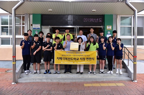 봉화군 보건소는 8일 오전 10시 30분 치매극복 선도학교로 지정된 한국산림과학고등학교에서 현판식을 개최했다.