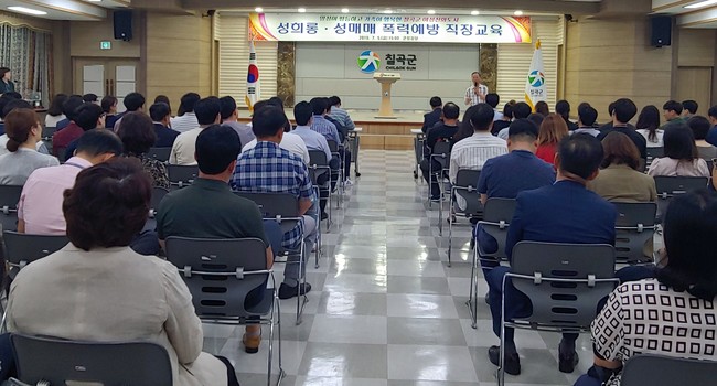 칠곡군은 지난 5일 군청강당에서 전 직원이 참가한 가운데 성희롱·성매매 등의 성폭력 예방교육을 실시했다.