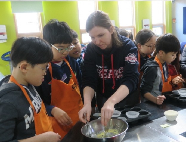 영어캠프에 참가한 학생들이 ‘쿠키 만들기’ 수업에 참여하고 있다.