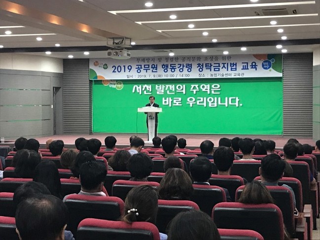 서천군은 9일 농업기술센터 교육관에서 소속 공무원 480여 명이 참석한 가운데 ‘2019년 공무원 행동강령·청탁금지법 교육’을 실시했다.