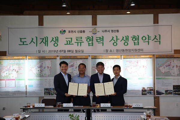 전남 나주시는 지난 8일 영산동 도시재생 주민협의회와 경기 포천시 신읍동 도시재생주민협의체 간 상생발전 업무 협약을 체결, 상호 교류를 통해 양 지역 특산품 홍보와 판촉 활동에 나선다고 밝혔다.
