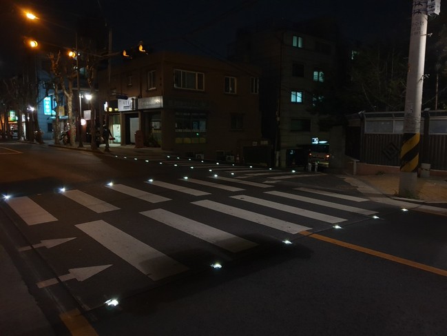 ‘활주로형 횡단보도’는 횡단보도 양 옆을 따라 일정한 간격으로 매립한 LED 유도등을 점멸해 건널목임을 인지시키는 교통안전시설이다. 야간뿐 아니라 미세먼지, 안개, 우천 등 기상변화로 인해 가시거리가 짧아졌을 때 유용하다. 보행자나 운전자가 ‘활주로형 횡단보도’를 보다 쉽게 인지할 수 있기 때문이다. LED 유도등이 반딧불처럼 반짝여 멀리서도 횡단보도임을 알기 쉽게 해 준다.