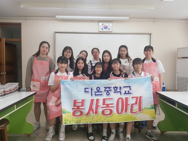 다온중학교 봉사동아리는 4월부터 흥선동 행정복지센터 복지지원과를 방문해 저소득계층을 위한 밑반찬 3가지와 더불어 손뜨개 수세미를 정기 후원하고 있다.