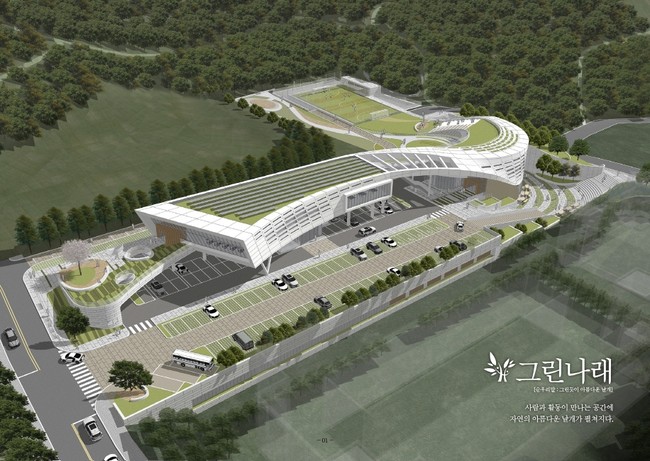 최우수작품은 그린나래라는 주제이다. 이 작품은 주민의 편의성과 각 스포츠 종목 기능별 동선의 분리가 잘 구현돼있으며, 주변과 자연스럽게 어우러지는 형태로 환경 친화적 제로에너지 건축물 실현을 위한 계획이라는 호평을 받았다.