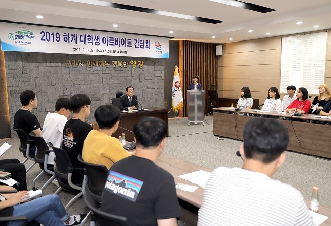 영광군은 지난 8일 군청 소회의실에서 여름방학 동안 군청 실과소 및 읍·면사무소에서 근무할 아르바이트 대학생 46명과 간담회를 가졌다.