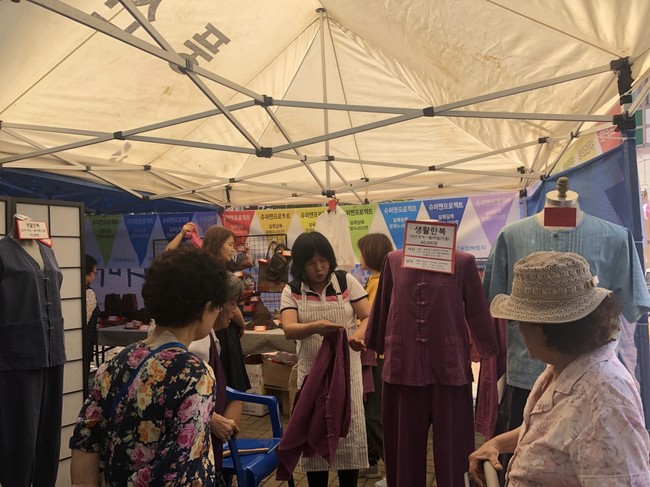이날 현장에서는 지역 장인들이 직접 제작한 다양한 수공예 생활예술품이 저렴하게 전시·판매되었고 그 중 생활 한복과 도자기, 천연염색 스카프가 이용자들에게 최고 인기상품이었다.