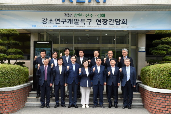 경남 김해시와 창원시, 진주시가 지난 6월 19일 정부 강소연구개발특구에 지정된 가운데, 9일 창원 전기연구원에서 문미옥 과학기술정보통신부 제1차관 주재로 현장간담회가 열렸다.