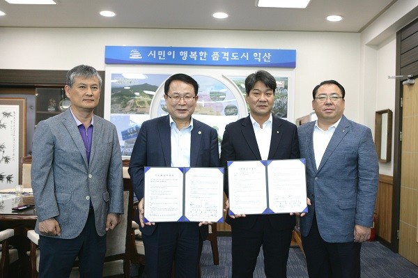 9일 익산시에 따르면 이날 시장실에서 NH농협은행 익산시지부와‘무더위쉼터 그늘막 기부채납 약정’을 체결했다.