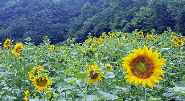 활짝 핀 해바라기는 더운 여름 세량지를 찾아온 관광객에게 ‘인생 샷’을 남기는 추억의 한 페이지를 선사한다.