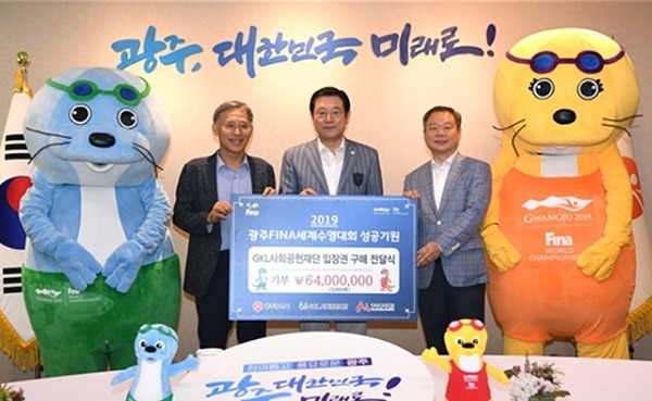 GKL사회공헌재단의 윤석현 사무국장은 “평소 스포츠 문화향유 기회가 적은 사회적 약자에게 관람 기회를 제공하고 국민적 관심을 불러 모으기 위해 기부를 하게 됐다”면서 광주세계수영선수권대회의 성공적 개최를 기원했다.