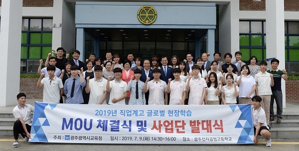 9일 광산구가 광주전자공고에서 광주시교육청 등과 업무협약을 맺고, ‘2019 직업계고 글로벌 현장학습 발대식’을 가졌다.