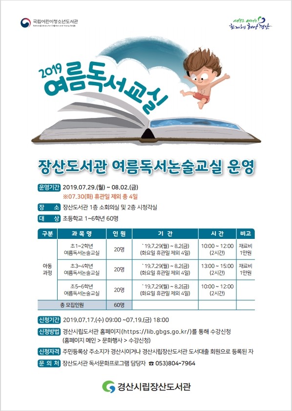 경산시 장산도서관에서는 2019년 여름을 맞이해 지역 시민들을 위한 다채로운 독서문화프로그램을 준비했다.