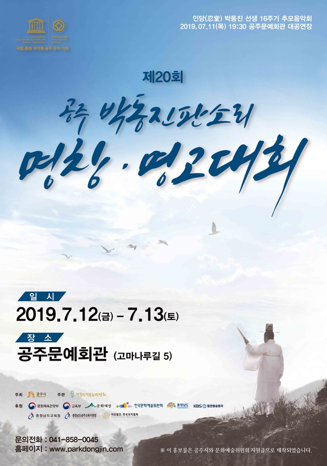 최덕근 문화체육과장은 “박동진 판소리 명창·명고대회는 우리나라를 대표하는 신진 명창·명고들의 대표적 등용문”이라며, “특히 올해는 국립충청국악원 공주 유치를 위한 당위성과 필요성을 전 국민과 함께 공감할 수 있는 뜻깊은 기회가 될 것으로 기대한다”고 말했다.