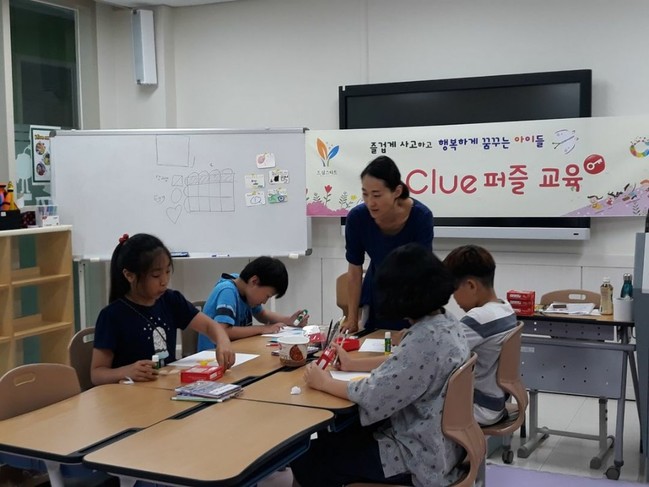 클루퍼즐 교육은 영재교육기관에서 창의사고력 교구로 가장 많이 채택되고 있는 교육프로그램으로, 드림스타트 아동들의 사고력과 창의력을 향상시키기 위해 마련됐다.