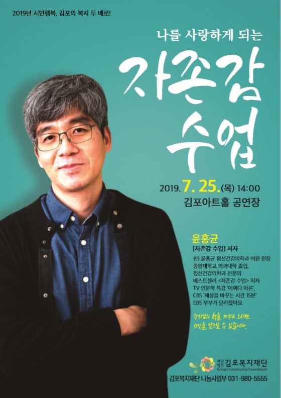 김포복지재단은 오는 25일 오후 2시 김포아트홀에서 ‘나를 사랑하게 되는 자존감 수업’ 강연을 진행한다.
