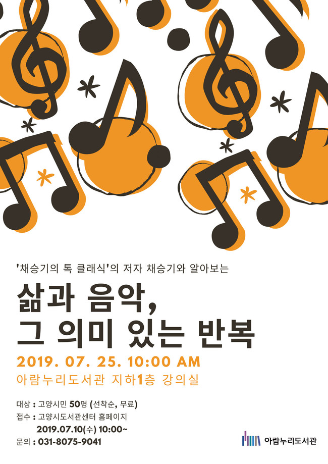 예술 특성화 도서관인 고양시립 아람누리도서관은 오는 25일 목요일 오전 10시부터 ‘삶과 음악, 그 의미 있는 반복’에 대한 클래식 인문학 강연을 개최한다.