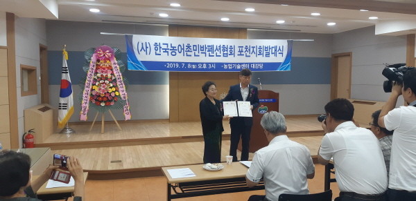 이날 발대식은 농어촌민박 석동선 회장의 임명장 수여식, 임원소개 및 경과보고 순으로 진행됐다. 박윤국 시장을 비롯해 조용춘 포천시의회의장, 김영우 국회의원, 이철휘 더불어민주당 포천·가평 지역위원장, 김종수 민박협회 경기도지부장 등이 참석해 축사를 전했다.