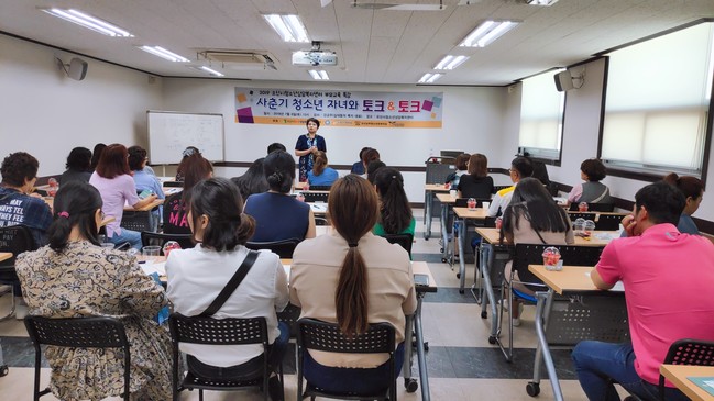 “사춘기 청소년 자녀와 토크&토크”라는 주제로 십대들의 쪽지 강금주 대표를 모시고 청소년 자녀와 대화할 때 부모가 해야 할 말과 하지 말아야 할 말, 부모의 말 차림표, 부모의 말 습관의 중요성 등에 대한 내용으로 부모교육을 했다. 부모가 사춘기 청소년 자녀를 이해하고 공감하기란 매우 어려운 일이다. 그럼에도 불구하고 부모가 사춘기 청소년 자녀를 이해하고 있는 그대로의 존재를 소중하게 여겨줄 때 자존감 있는 사람으로 성장할 수 있음을 강조했다.
