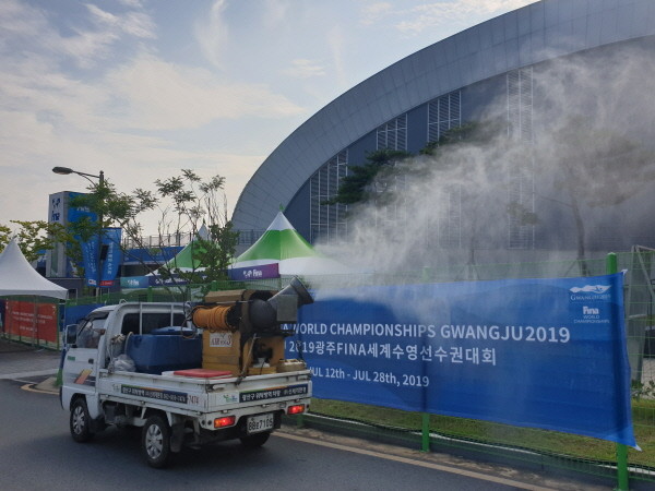 광산구보건소가 광주세계수영대회를 대비해 주경기장이 있는 남부대와 우산동 선수촌·미디어촌 안팎과 주변 사전 특별방역을 개막식 하루 전인 오는 11일까지 실시한다.