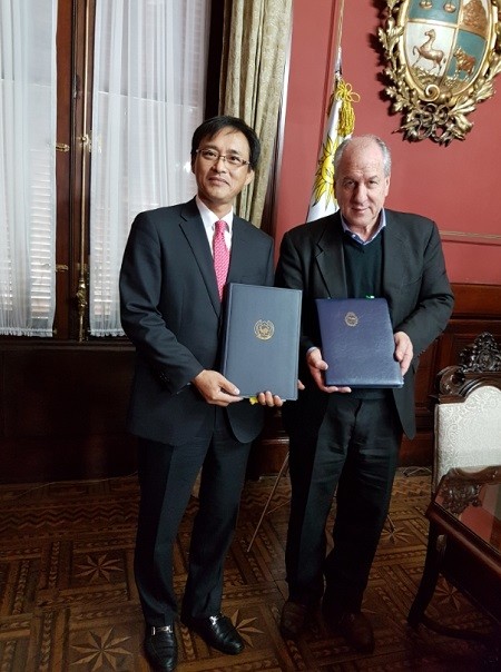 황성연 주우루과이 대사와 우루과이 에르네스토 무로노동부장관은 지난 9일 우루과이 몬테비데오에서 ‘대한민국 정부와 우루과이동방공화국 정부 간의 사회보장에 관한 협정’에 서명했다. 협정은 앞으로 양국의 국회 비준동의 등 절차를 거쳐 발효될 예정이다.