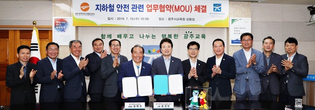 광주광역시교육청이 10일 광주광역시도시철도공사와 학생 및 교직원들의 지하철 안전교육과 지하철 사고예방을 위해 업무협약을 체결했다.