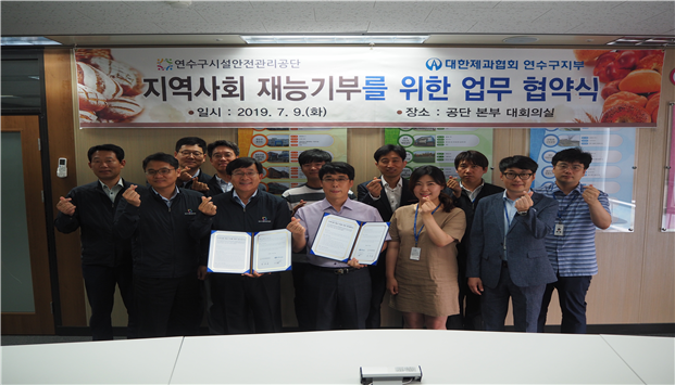 인천광역시 연수구시설안전관리공단은 대한제과협회 인천광역시지회 연수구지부와 지역사회 재능기부 활성화를 위해 업무협약을 체결했다.