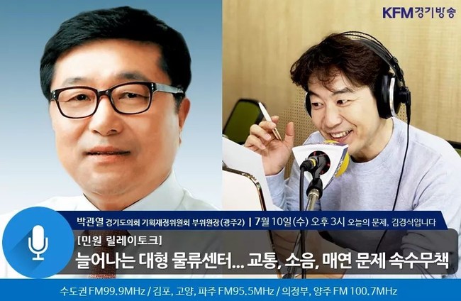 박관열 경기도의원이 10일 방송된 KFM 경기방송 ‘오늘의 문제 김경식입니다 內 릴레이토크’에 출연해 광주시민들 대다수의 반대에도 불구하고 일방적으로 추진되고 있는 물류단지 조성사업이 즉각 중단 돼야 한다는 반대의견을 분명히 했다.