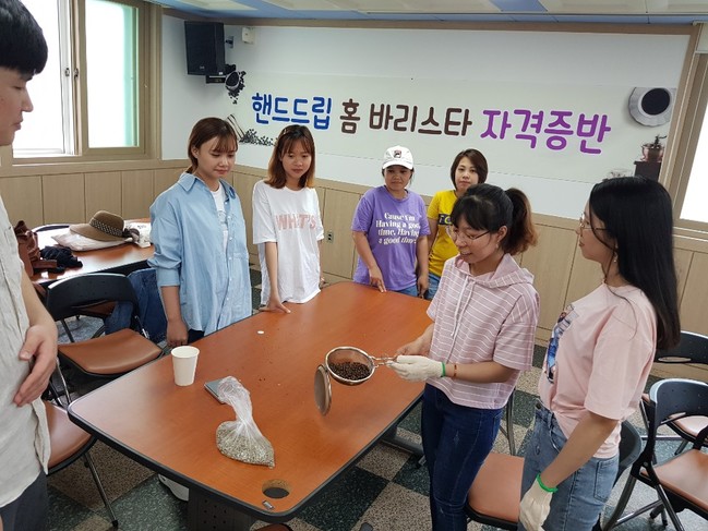 교육은 매주 화요일과 수요일 오후 1시, 총 6회에 걸쳐 진행되며 핸드드립 이론, 커피도구 사용법, 라떼아트 연습, 다양한 카페 메뉴를 배우게 된다.