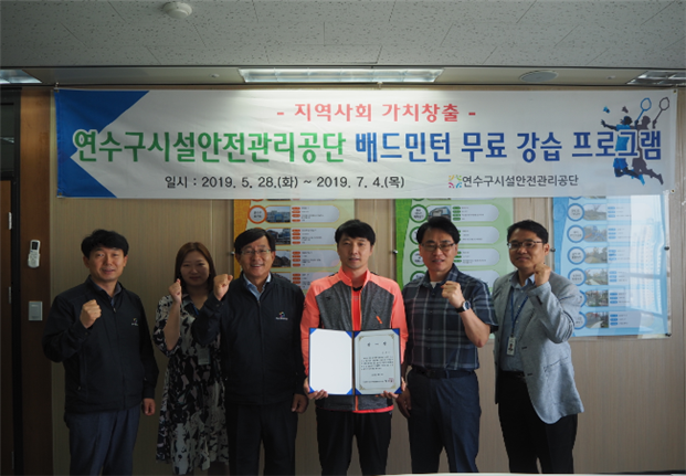 연수구시설안전관리공단은 ‘연수구 아동 무료 배드민턴 강습’에서 전문 강사로서 재능기부에 참여한 연수구민에 대해 감사장을 수여했다.