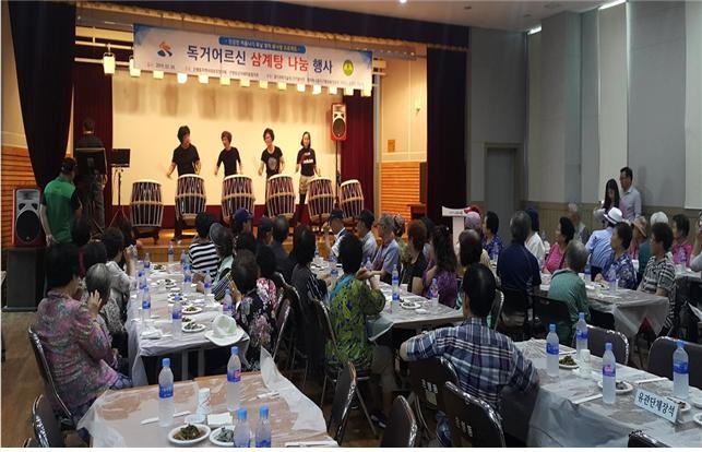 은행동지역사회보장협의체와 은행동남녀새마을지도자협의회는 지난 9일관내 독거어르신 100명을 모시고 건강한 여름나기‘복날맞이 독거어르신 삼계탕’나눔을 실시했다.