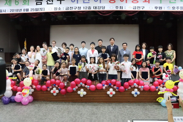 지난해 8월 열린 ‘제6회 금천구 어린이 영어동화 구현대회’에서 참가자들이 기념촬영을 하고 있다.