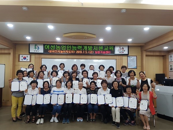 단양군농업기술센터는 여성농업인 능력개발지원 교육의 일환으로 진행한 “실버인지놀이지도자 양성교육”을 큰 호응 속 마무리 했다고 밝혔다.