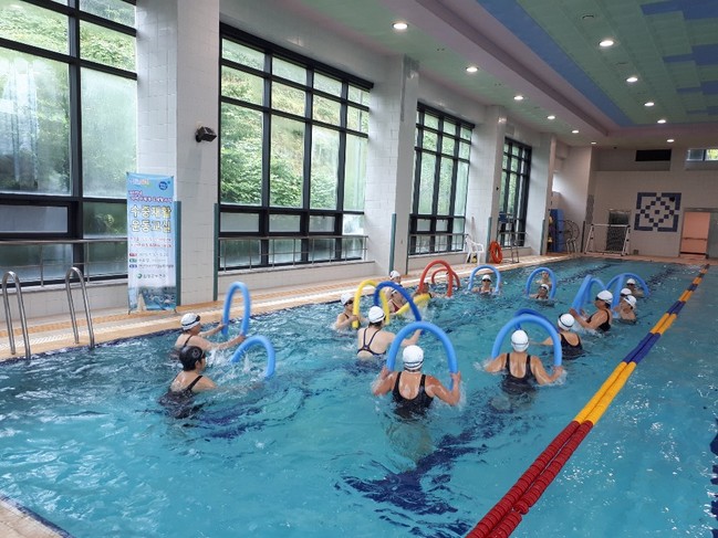 본 프로그램 참여자들은 전문 강사의 지도 아래 아쿠아봉, 킥판 등을 이용한 상·하지 근력강화운동 교육을 받게 된다.