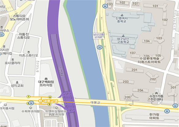 물놀이장 위치도(중구 대봉교 하류 생활체육광장)