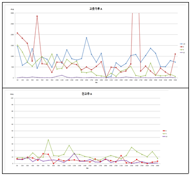고춧가루와 건고추의 저장 온도별 곰팡이 발생 변화