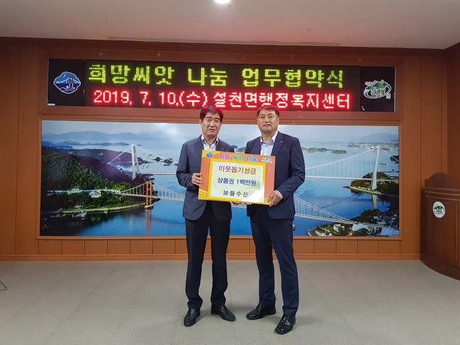 설천면행정복지센터는 연초 문수선원을 시작으로 매월 희망씨앗 나눔 업무협약을 통해 지역 내 복지사각지대 발굴 및 취약계층 지원을 위한 활동을 지속적으로 전개하고 있다.