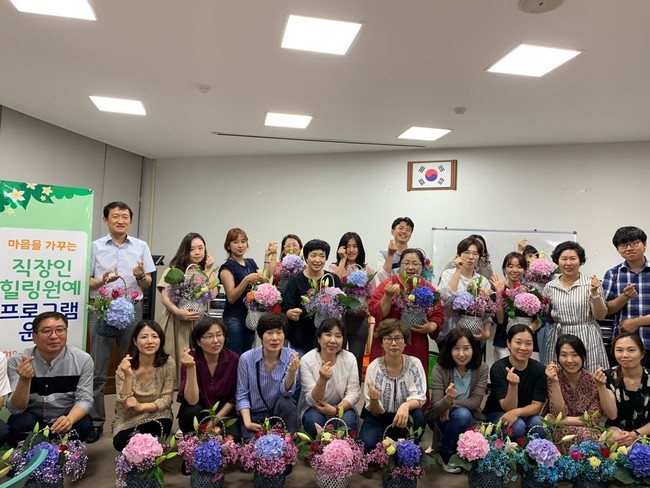 특히 미세먼지 저감 공기정화 식물 심기, 테라리움, 목공예, 꽃바구니 제작 등 심신 안정에 좋은 다양한 원예활동을 통해 일상 속 스트레스를 완화하며 교육 참여자들의 큰 호응을 얻었다.