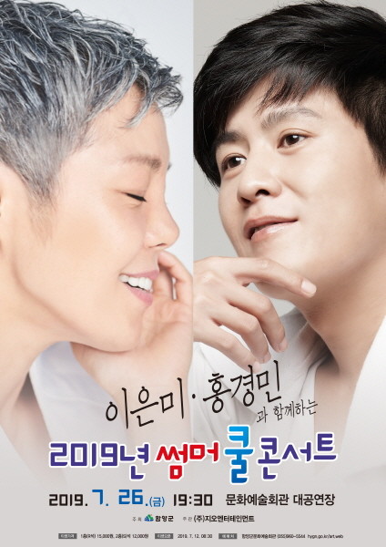 함양군은 오는 26일 금요일 오후 7시 30분 문화예술회관 대공연장에서 ‘이은미·홍경민과 함께하는 2019년 썸머 쿨 콘서트’를 개최한다.