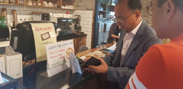 조웅제 부군수를 비롯한 간부공무원들은 지난 10일 오후 군청 내 카페를 방문해 제로페이 이용현황을 확인하고 제로페이 결제를 이용했다. 또한 카페를 찾은 주민들에게도 제로페이의 취지와 장점 등을 알리며 적극적인 이용을 당부했다.