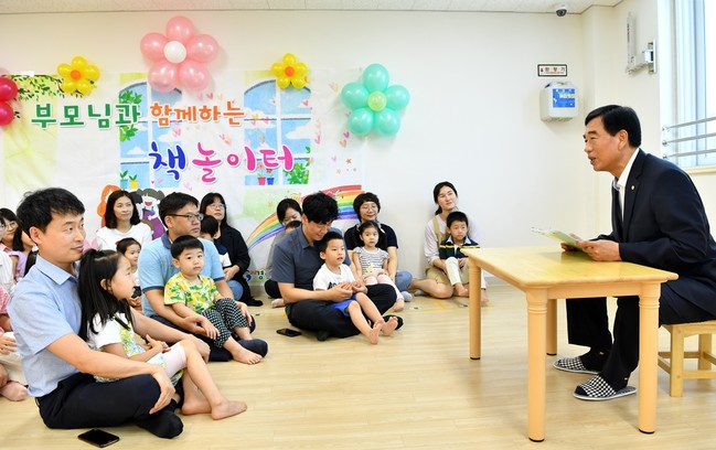 최영조 경산시장, 시청 직장어린이집 방문 아이들과 함께 책 읽는 시간 가지다.