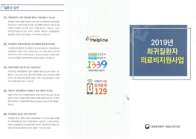 해당상병확인은 보건소에 문의 또는 보건소 홈페이지, '희귀질환헬프라인' 홈페이지에서도 확인이 가능하다.