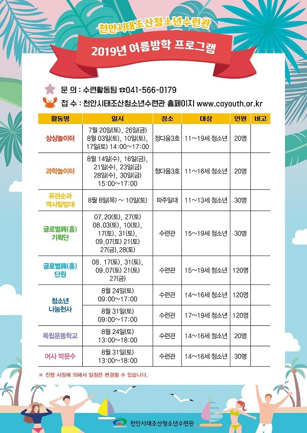 천안시 태조산청소년수련관이 올 여름방학을 맞아 청소년을 위한 다양한 활동 프로그램을 진행한다.
