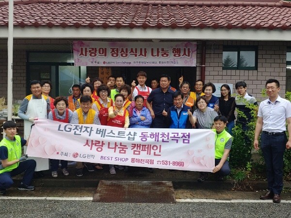지난 10일에는 드림레저의 천막 등 집기 후원과 LG전자베스트샵 동해천곡점에서 150만원 상당의점심식사와 사은품 제공으로, LH주공5차아파트 경로당 어르신들에게 맛있는 점심을 대접했다.