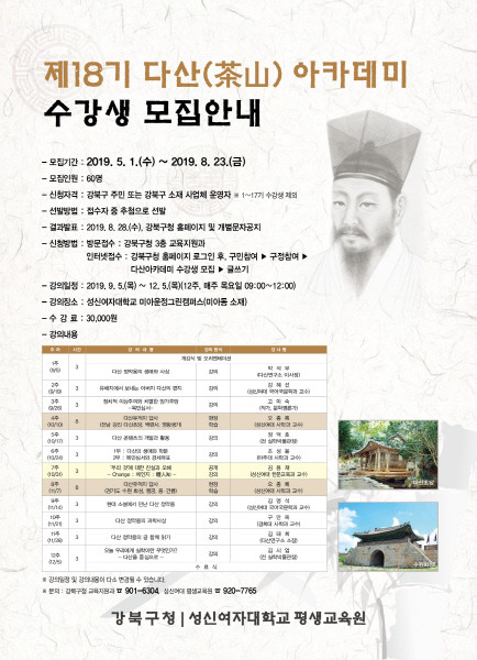 강북구, 제18기 다산 아카데미 수강생 모집