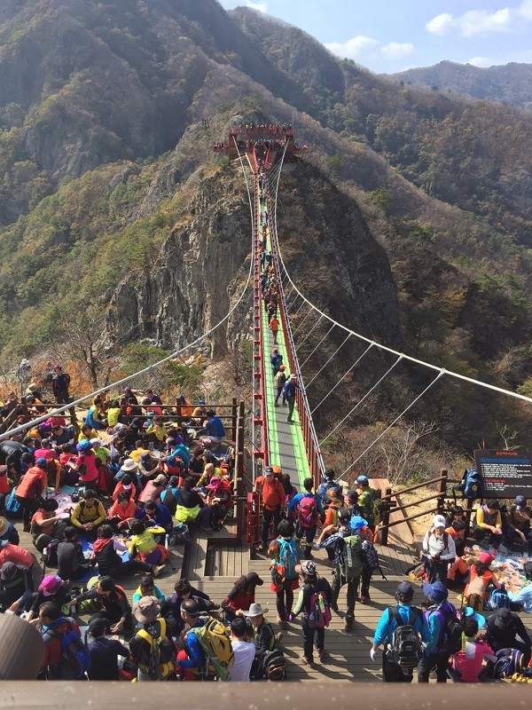 지난 2015년에 설치한 구봉산 구름다리는 무주탑 현수교로 주말이면 1천여 명의 등산객이 찾는다.