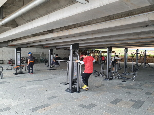 김포시는 시민들의 여가활동 증진을 위해 장기동 금빛수로 차도교 하부에 야외 체육시설물을 설치했다고 밝혔다.